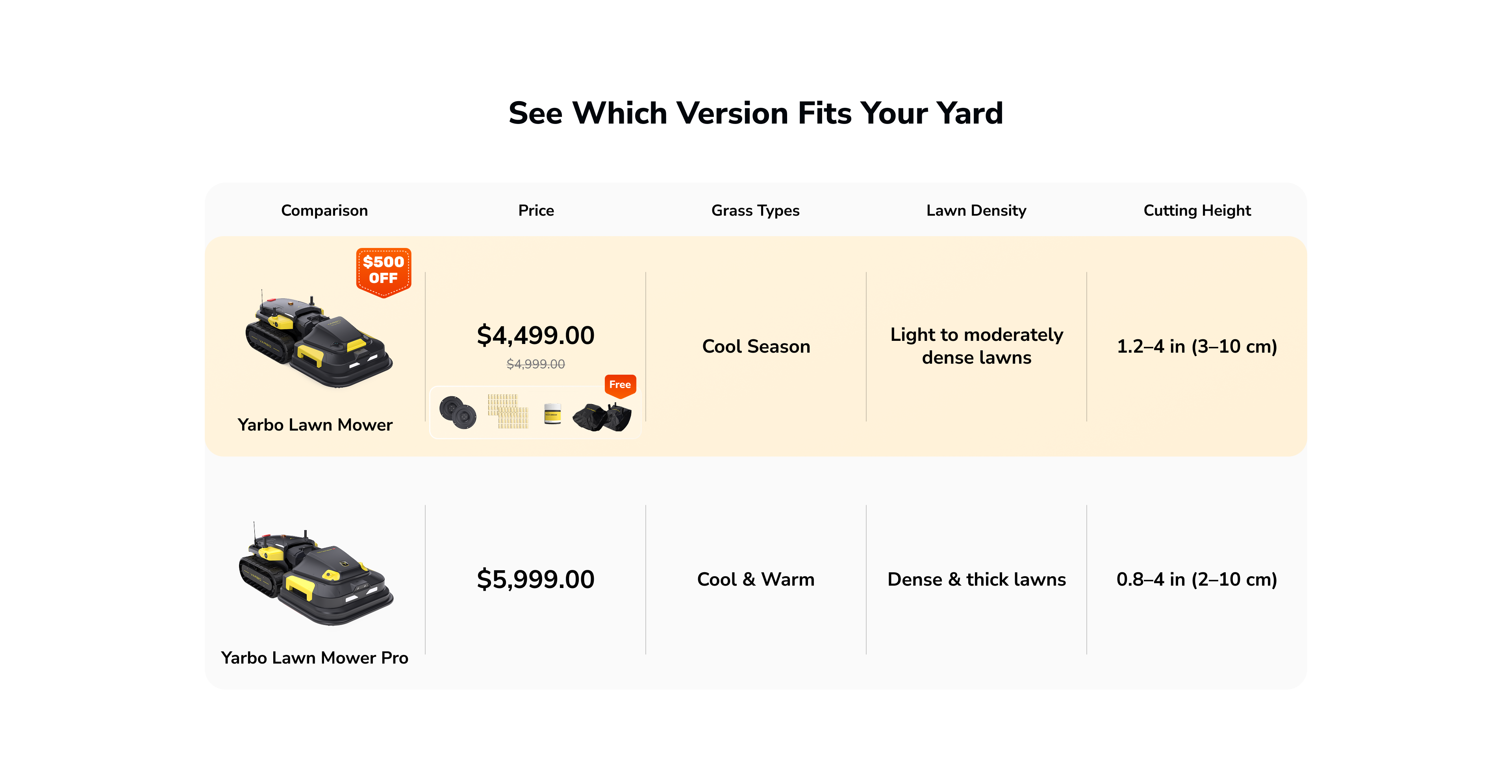 Offer B|Yarbo Lawn Mower:−$500 → $4,999 → $4,499 + Season-Ahead Kit(≈$250)
