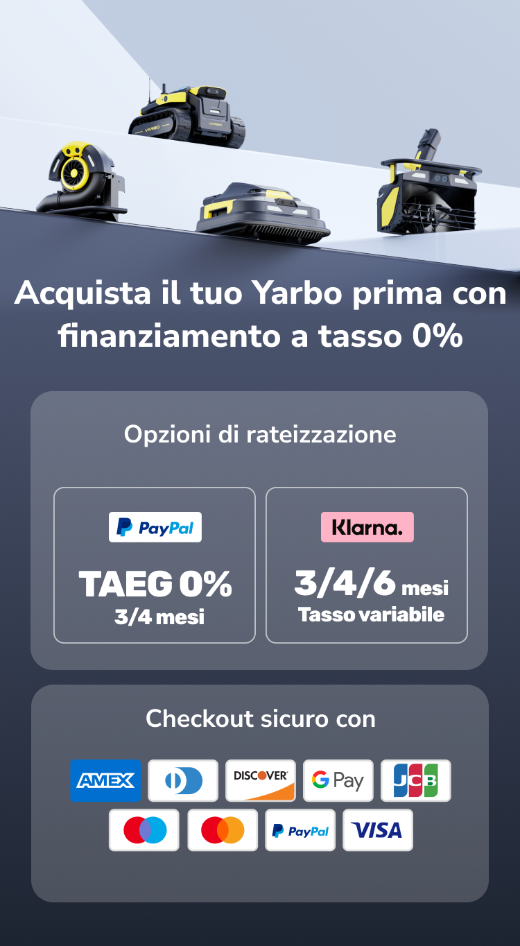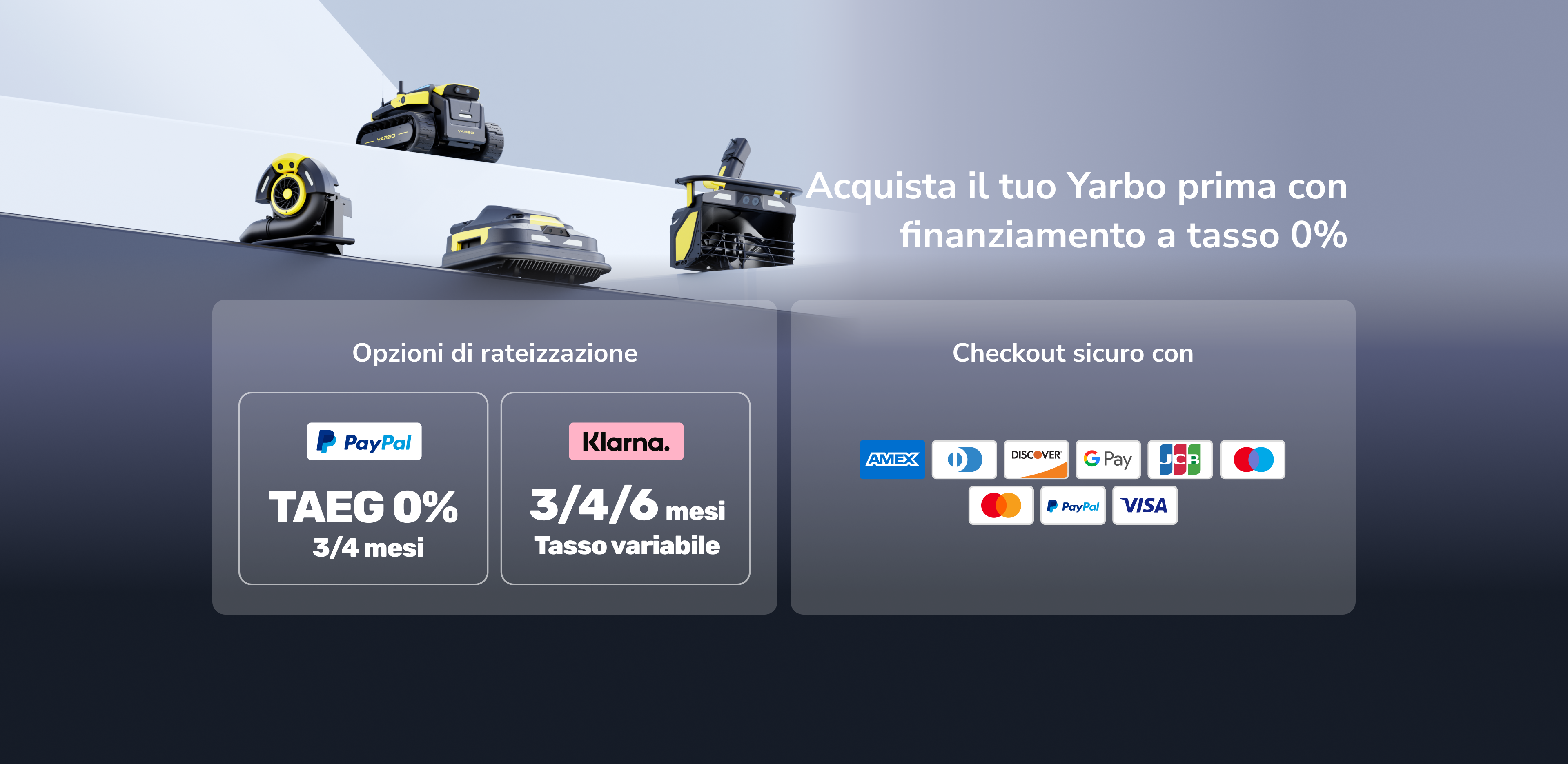 Raccomanda Yarbo, guadagna punti e riscattali per l'acquisto di prodotti Yarbo. Scopri di più>>>