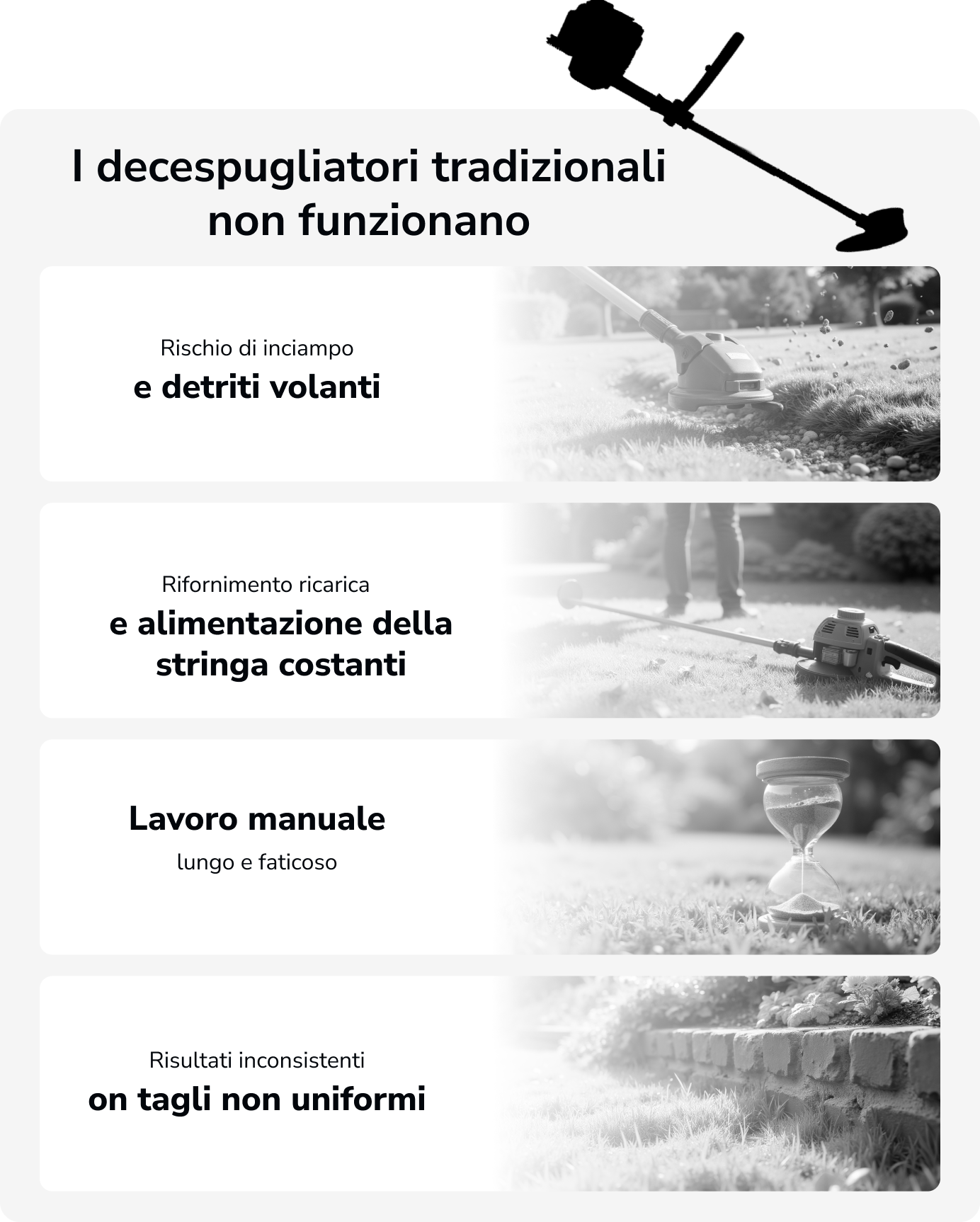 Per ottenere sempre un'ottima rifinitura grazie all'altezza di taglio regolabile da 5 a 10 cm. Ottieni un prato spettacolare con risultati incredibili, su misura per te.